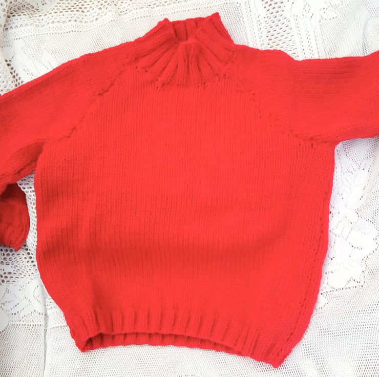Lovely child's hand knitted jumper made with soft and warm chunky yarn. The jumper is not in stock but it can be made for you in a size and colour of your choice. Please state the colour required when you order. Available sizes are shown at the bottom of this listing. The processing time for this jumper will be approximately 1 - 2 weeks to produce and post to you.