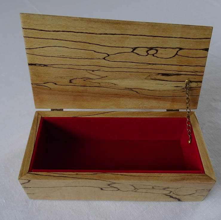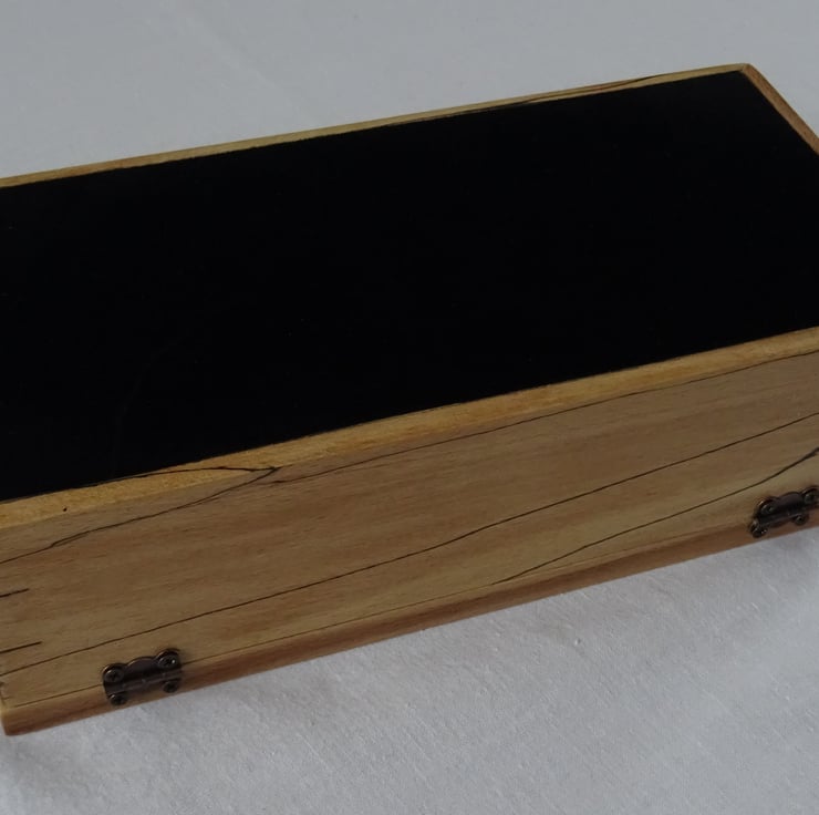 The lid and sides of the box all show the characteristic black lines and patterns of the spalting in the beech.