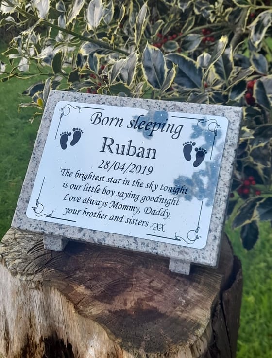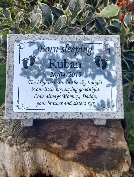 The plaque sits up on two solid granite feet.