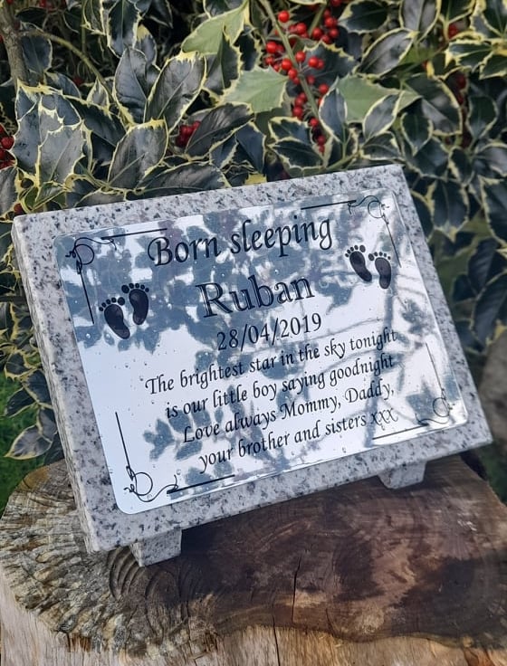 This listing is for polished high quality granite, silver in colour. The plaque comes in three sizes 9x7, 12x9 and 14x10