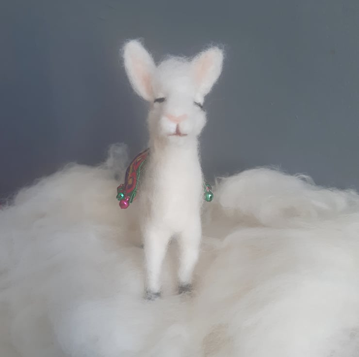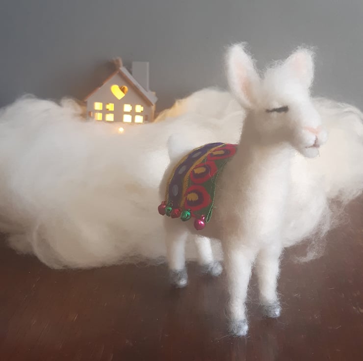 A llama isn't just for Christmas!! This needlefelted creature would look great as a Christmas ornament or could be a quirky gift to adorn the home all year round. It is hand crafted using the art of needle felting.
