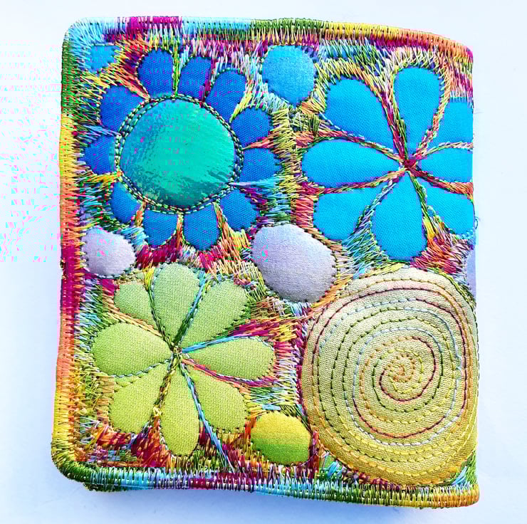 Made from layers of fabric including hand dyed Egyptian cotton and silk fabrics using the free machine embroidery style of sewing