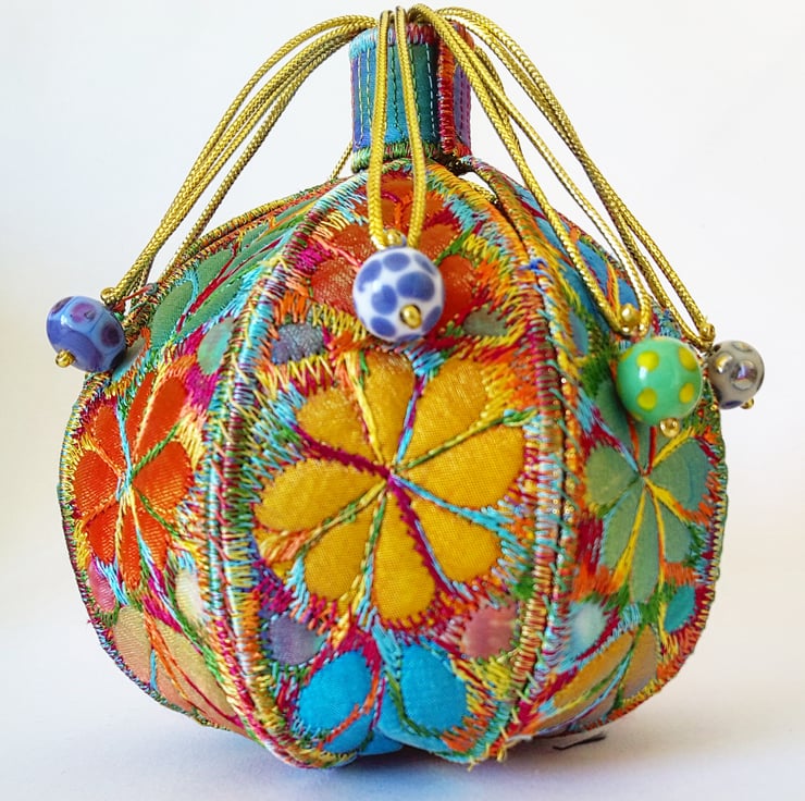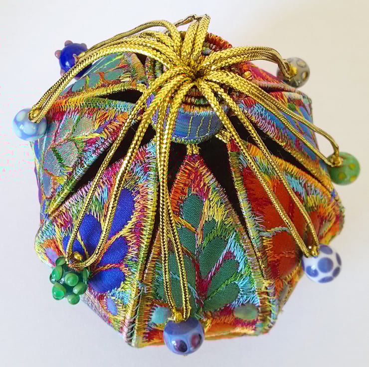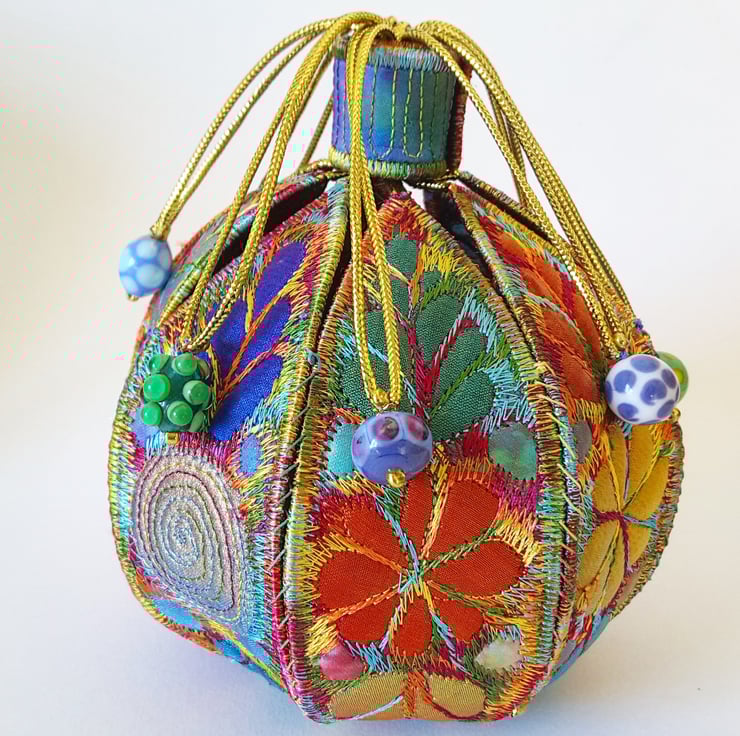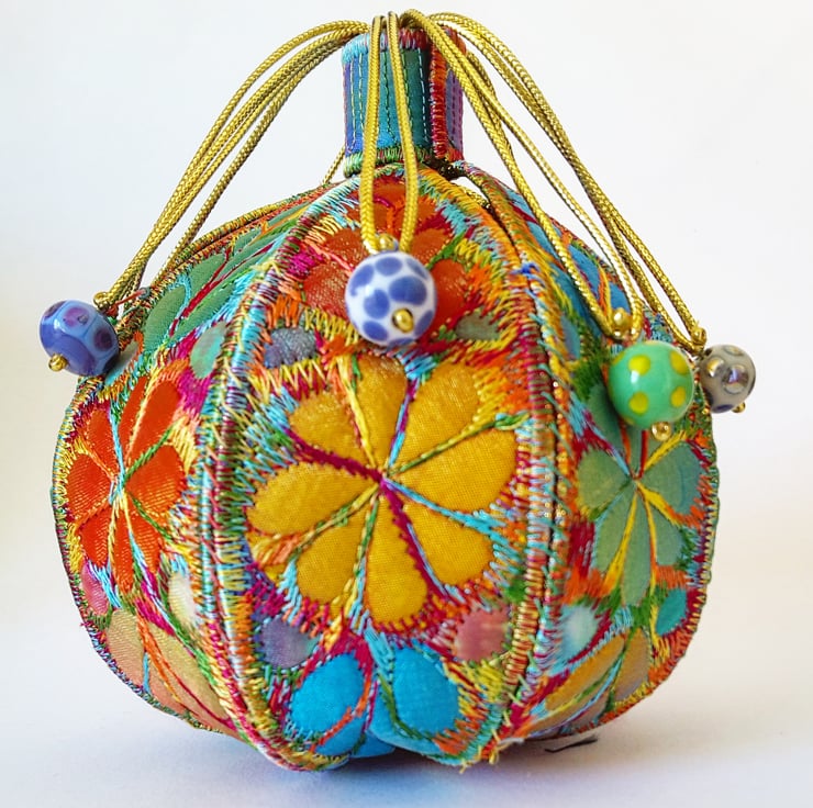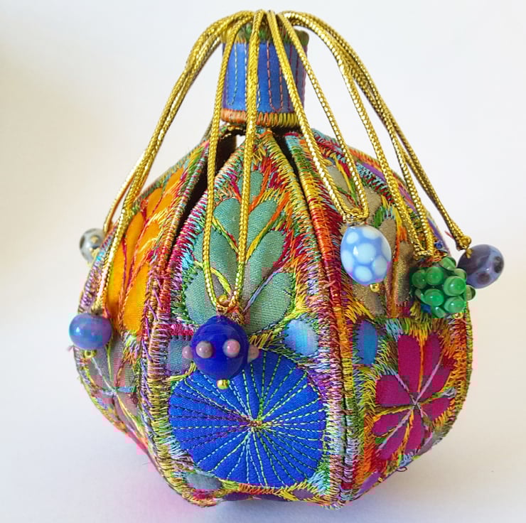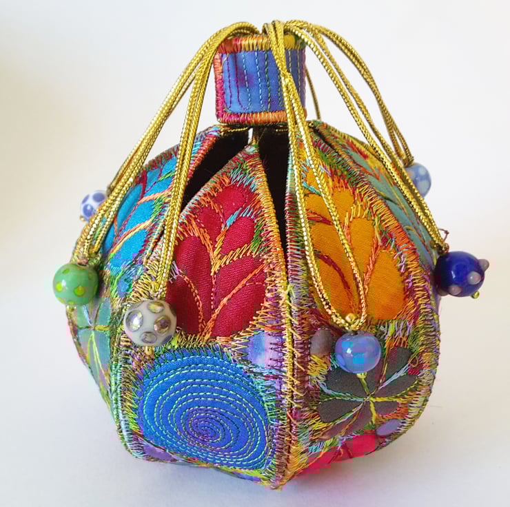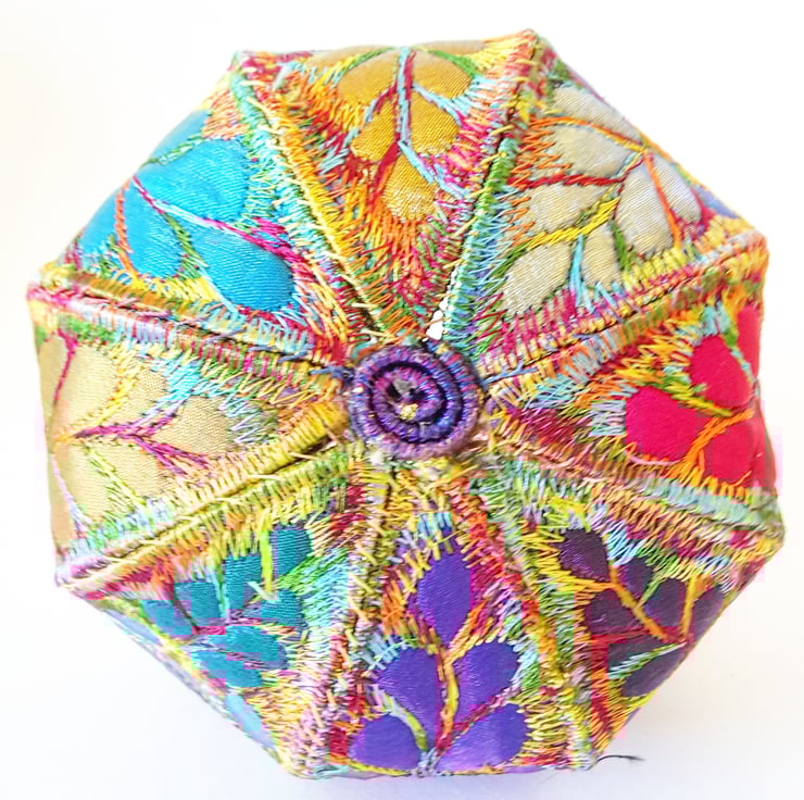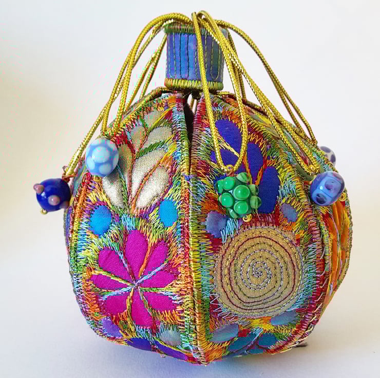 This is a handmade machine stitched fabric textile 3D pod