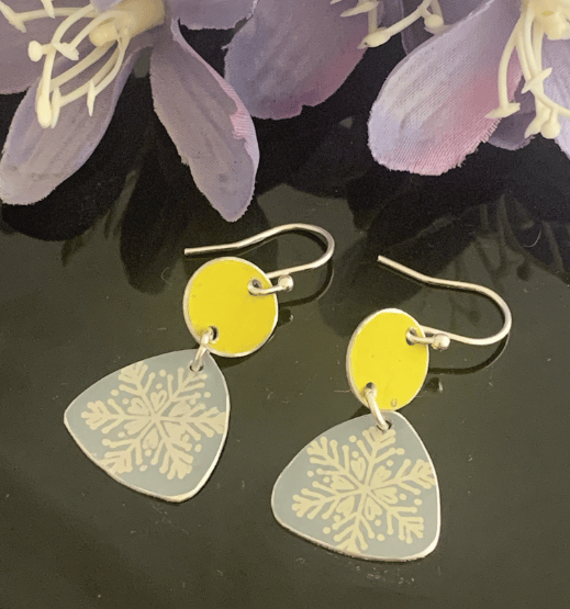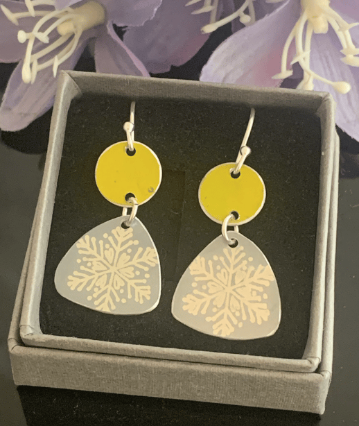 Hand painted and hand crafted Aluminium/sterling silver drop earrings.