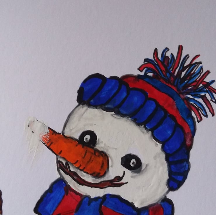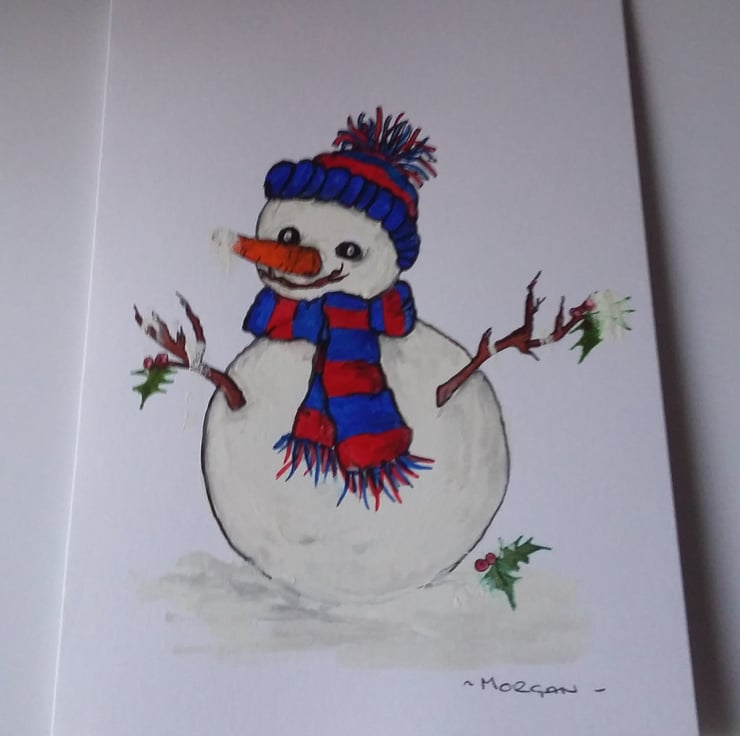 7" X5"" 250 gsm white blank card with an original hand painting of A Snowman