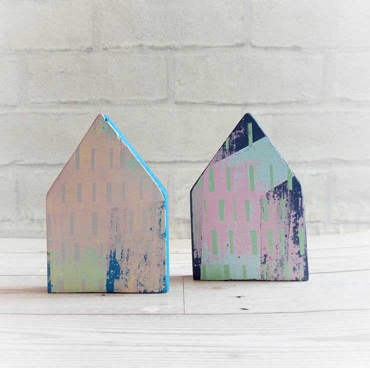 I moved to the countryside in 2019 and had been building up a stash of wood offcuts from other projects, intending to use them for firewood for the coming winter; realising that a lot of this wood was high quality pine which was too good to burn, I came up with the idea of using it to make little houses (a shape which is relatively easy to cut with limited woodworking skills/equipment). As it turns out, little houses are not only en vogue but they are the perfect canvas for experimenting with colour and pattern!