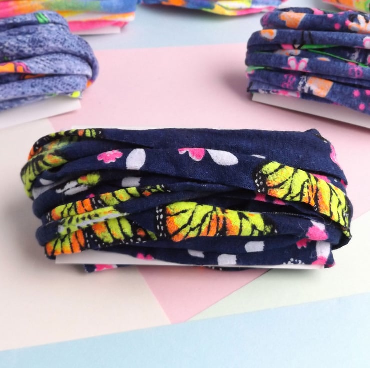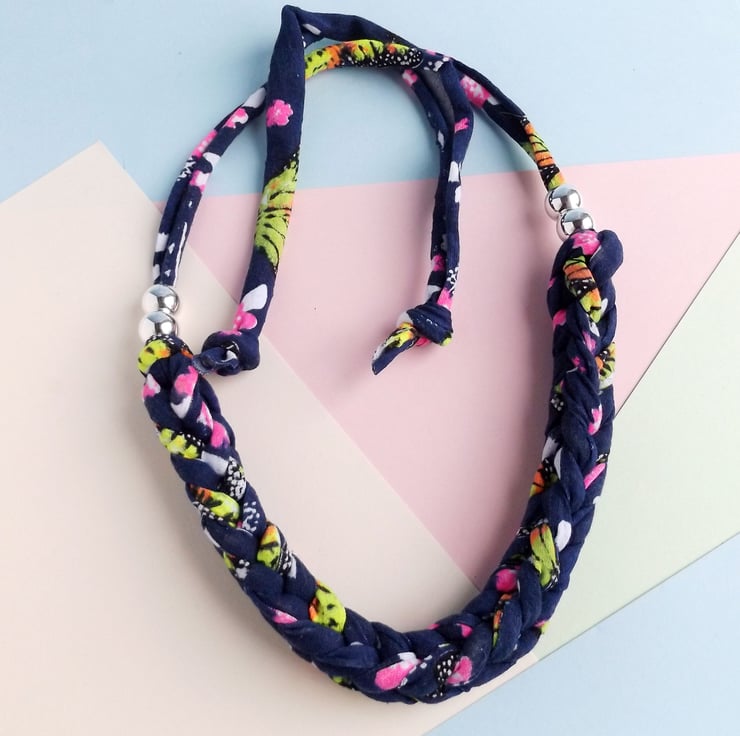 The finished necklace (up to 60cm 24” long approx) fastens with a simple knot or bow. A lightweight, versatile design that can also double up as a comfortable headband!