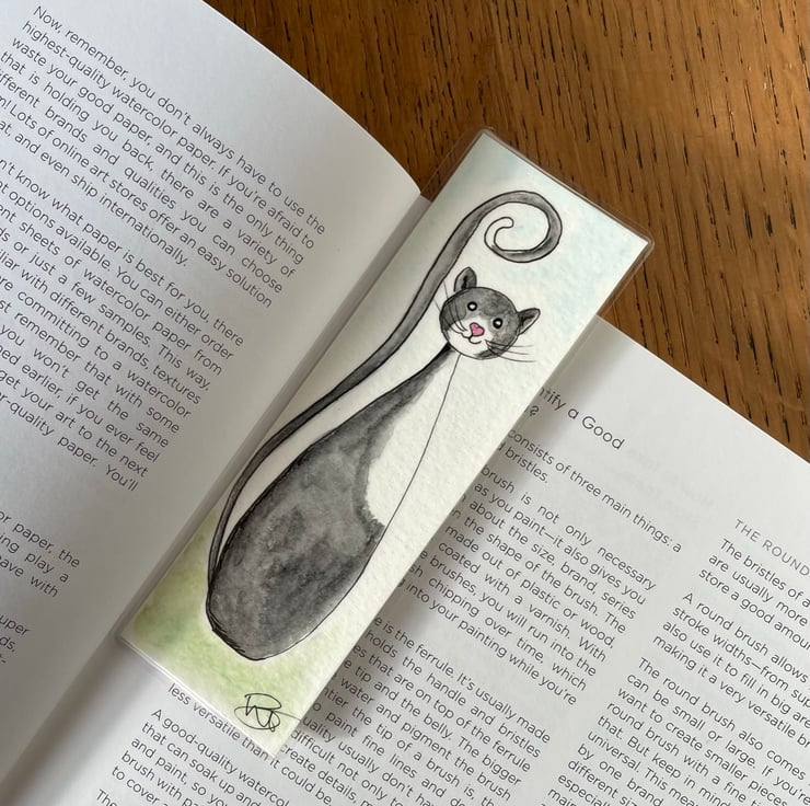 Little cute fat cat bookmark, hand painted with watercolour and ink onto 300gsm watercolour paper signed by myself the artist, before being laminated for protection.