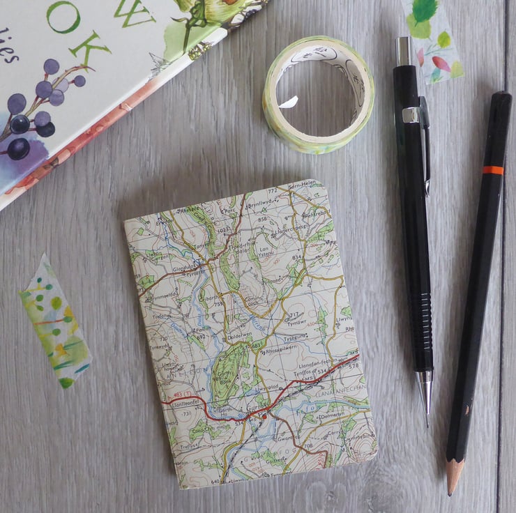 Each notebook is completely unique and the section of the map showing on the cover will vary for each notebook.