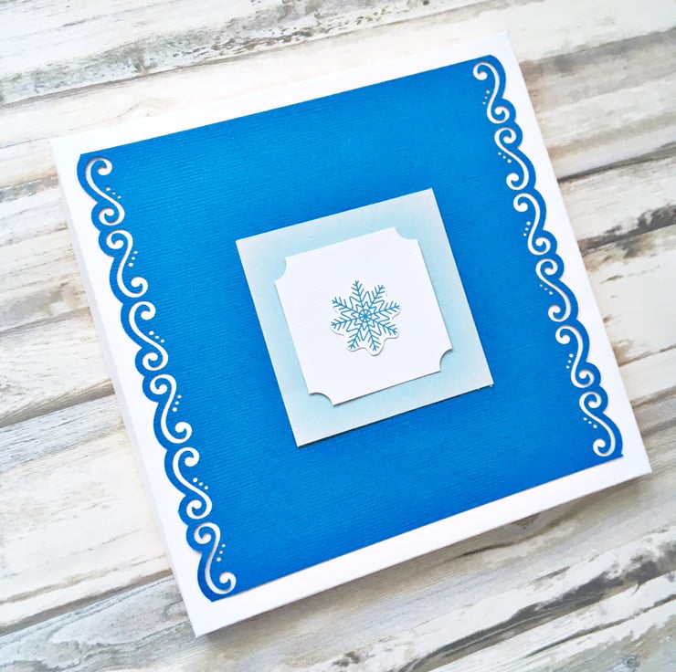This white scalloped card measures 15cm by 15cm and comes with a matching white envelope. It is blank inside for you to write your own greeting.