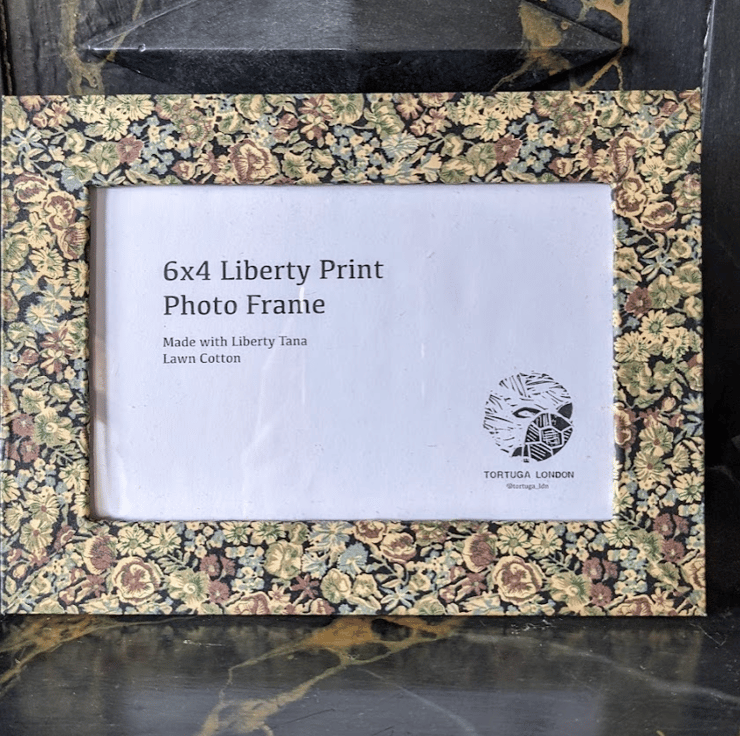 6x4 photo frame made with Liberty Tana Lawn Cotton in a floral design with dark base.