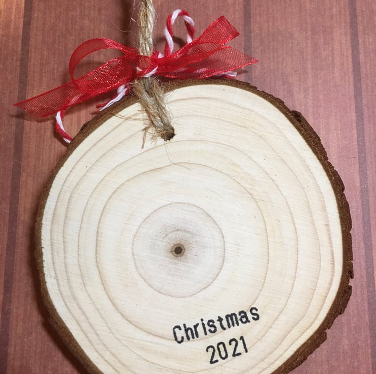 It has a string loop for hanging from your tree and it’s finished with a double bow of red organza ribbon and red and white bakers twine.