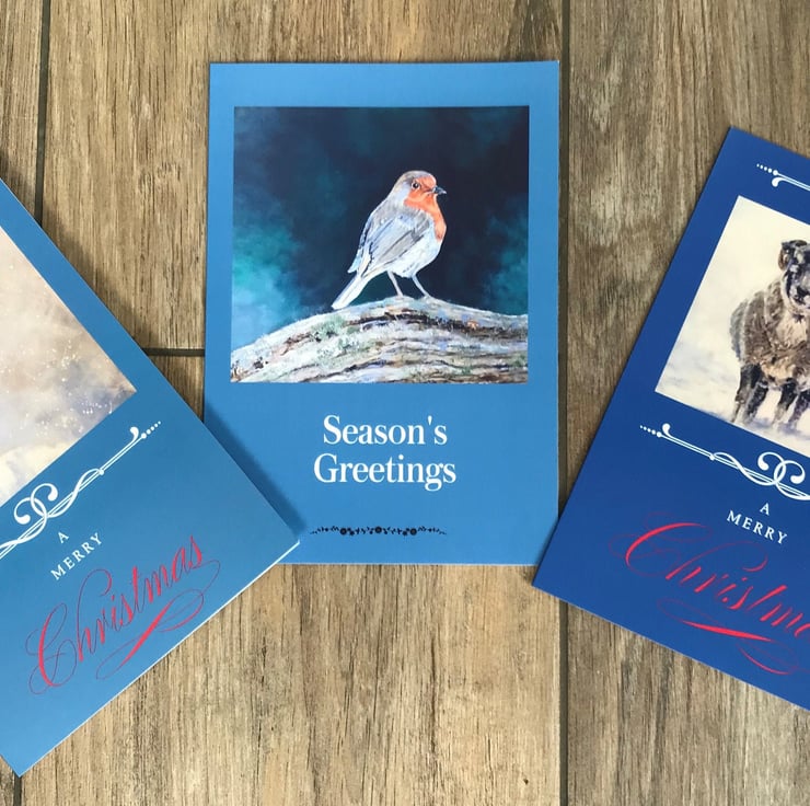 This pack of three large A5 Christmas cards by Northern Ireland born and Oxfordshire-based artist Janet Bird offers great value for money, providing purchasers with three cards for the price of two!