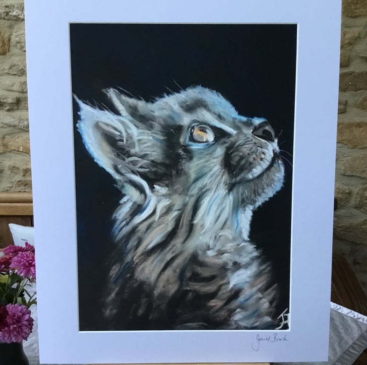 Purr-fect giclee print of 'Upward Glance' a cat painting by artist Janet Bird