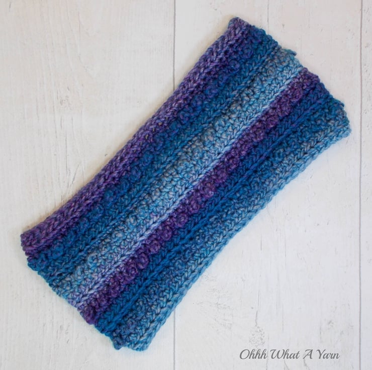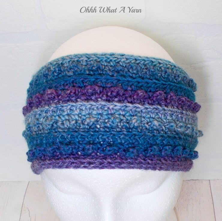 This gorgeous blue and purple one size ladies ear warmer/headband has been crocheted using a gorgeous 100% premium acrylic yarn.