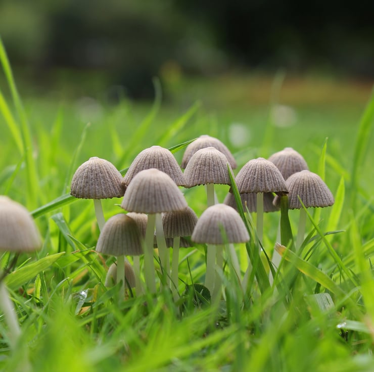 Originally inspired by a photograph I took and then sketched a few years ago, of a group of tiny little toadstools, their heads just showing amongst the grass.