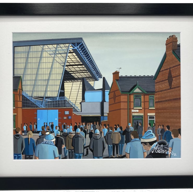 Titled ‘Maine Road Overflowed’ this is a unique Manchester City F.C print direct from myself the artist. My artworks are a celebration of the match day experience and of stadium architecture.