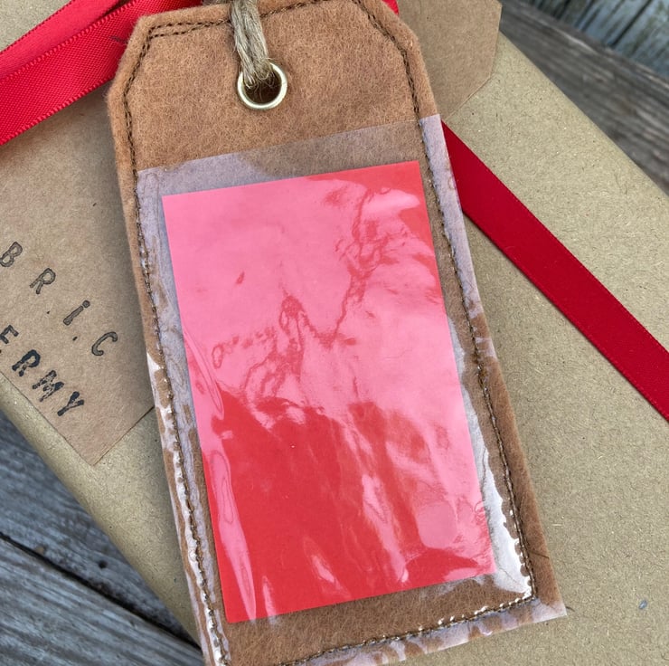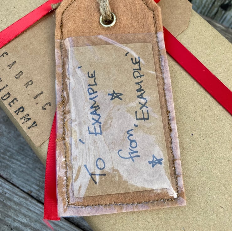 Hand made Gift tag featuring a red polka dot star. The gift tag is made using felt and cotton fabric, layered together and outlined with free motion embroidery. On the back of the tag is a clear plastic pocket to insert the gift details. So the recipient of the gift can remove their name and insert the new name, reusing the tag many times