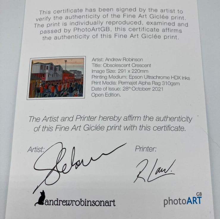 Titled ‘Obsolescent Crescent’ this is a unique York City F.C print direct from myself the artist. My artworks are a celebration of the match day experience and of stadium architecture.