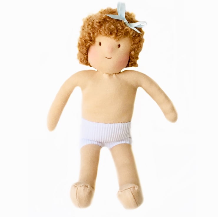 Maisy is a cute little doll made from best quality CE safe de Witte doll skin from Holland. She is made using a technique very similar to the Waldorf method, is very soft and squeezable and sits down easily. Her hair is made from pure wild mohair and her cheeks are coloured with beeswax. She is 28cm tall and is CE safe but is not suitable for children under 3.