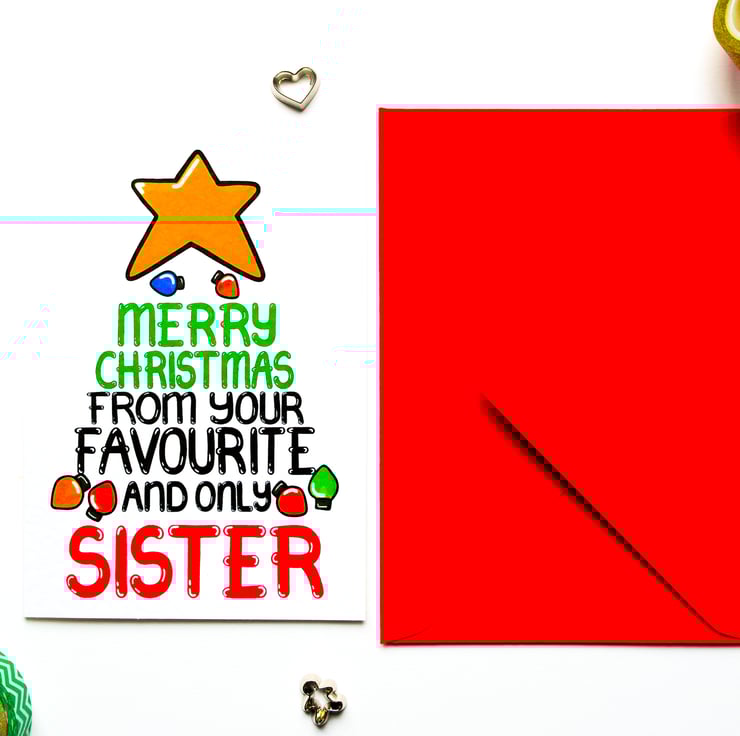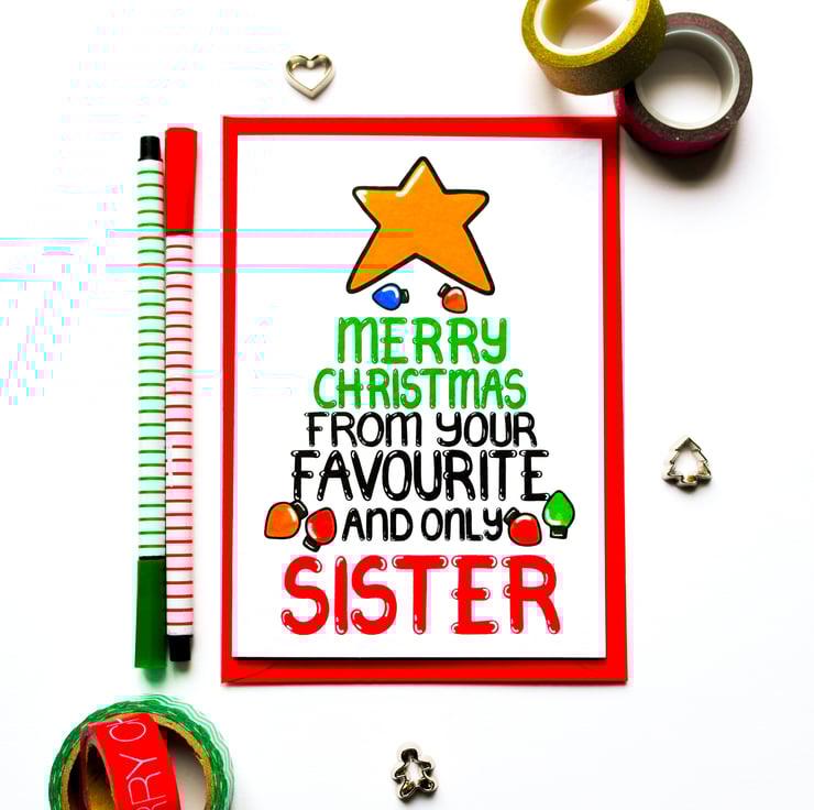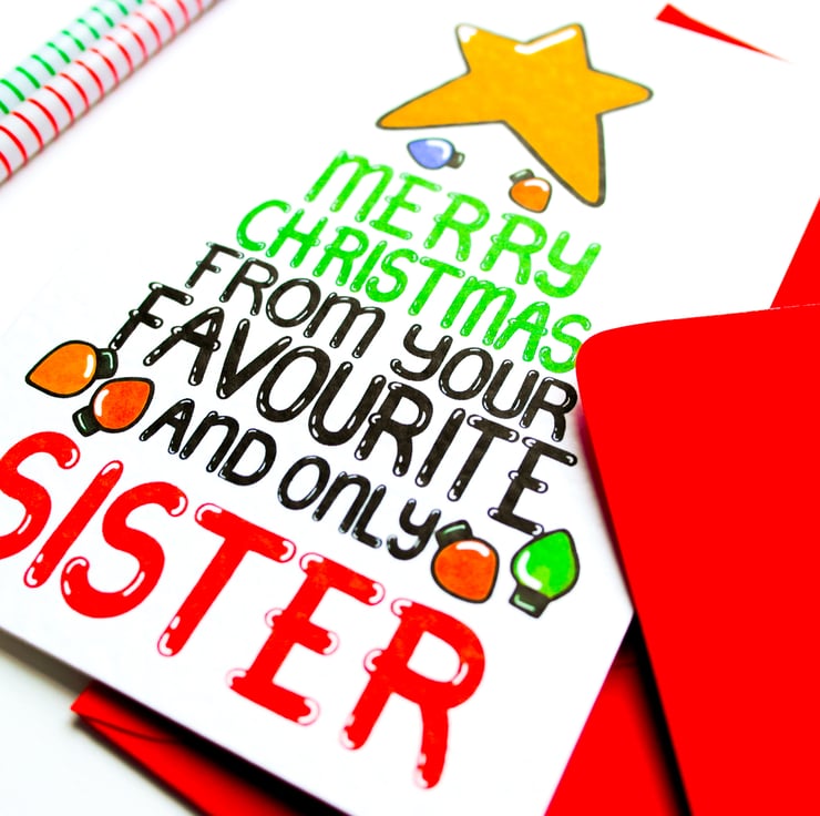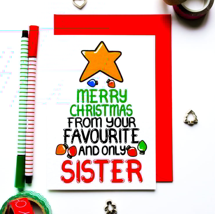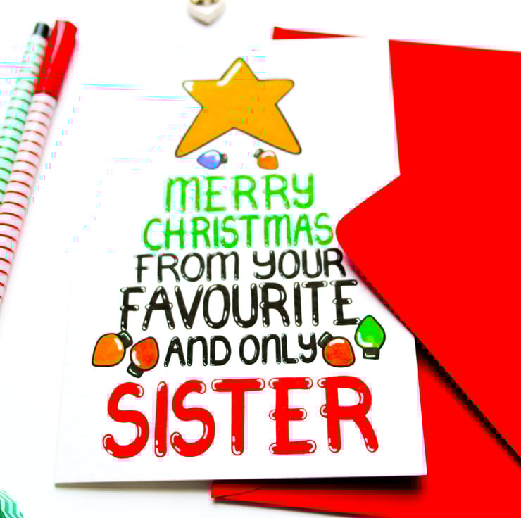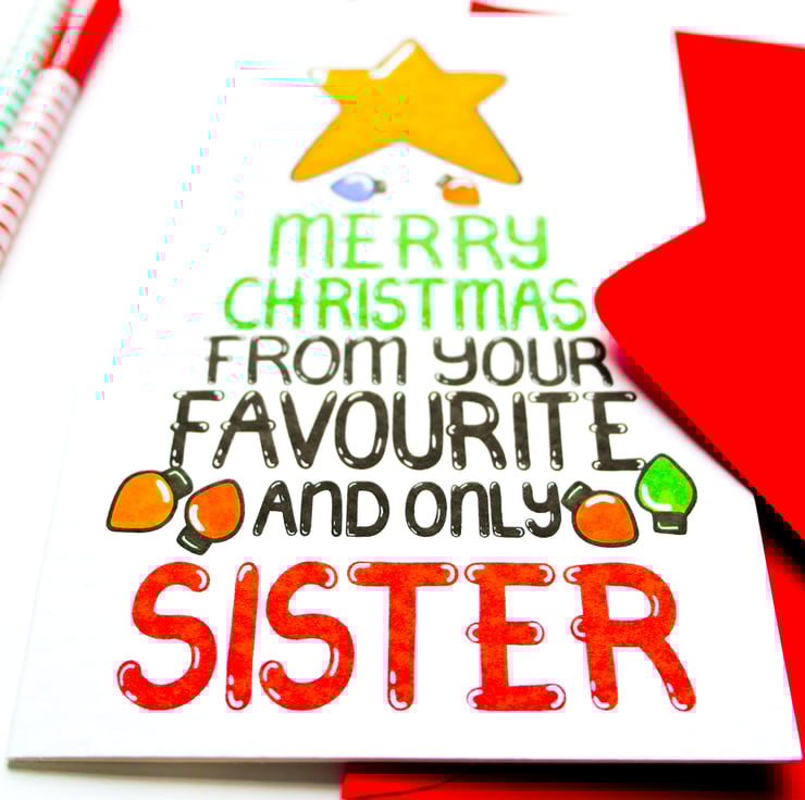 Greeting on front: MERRY CHRISTMAS FROM YOUR FAVOURITE AND ONLY SISTER