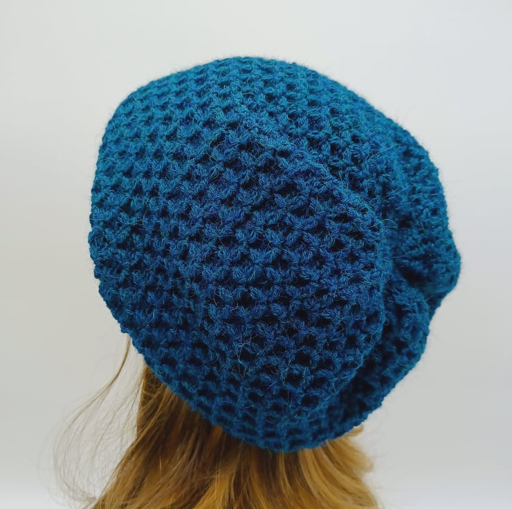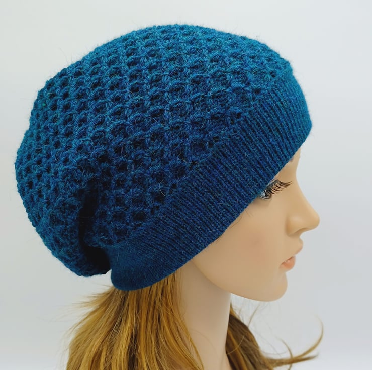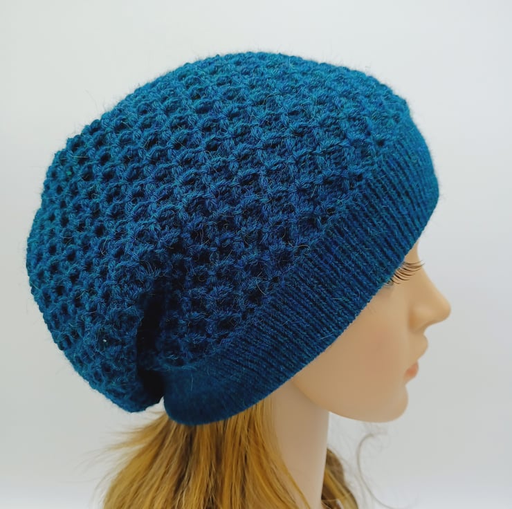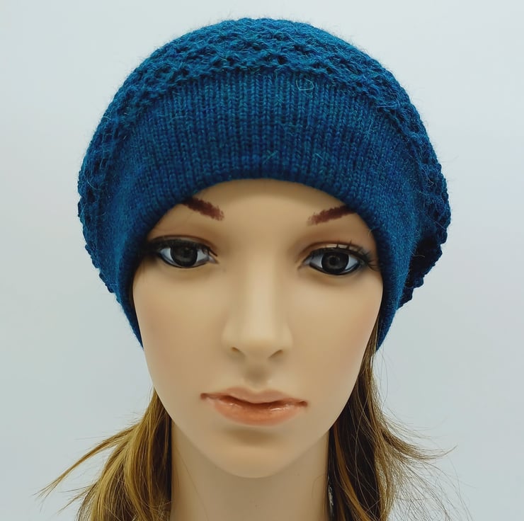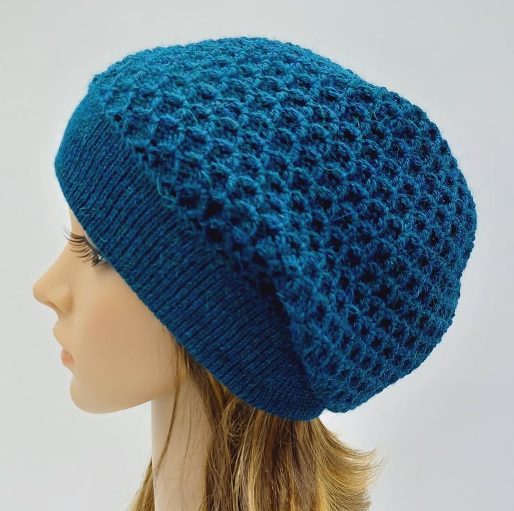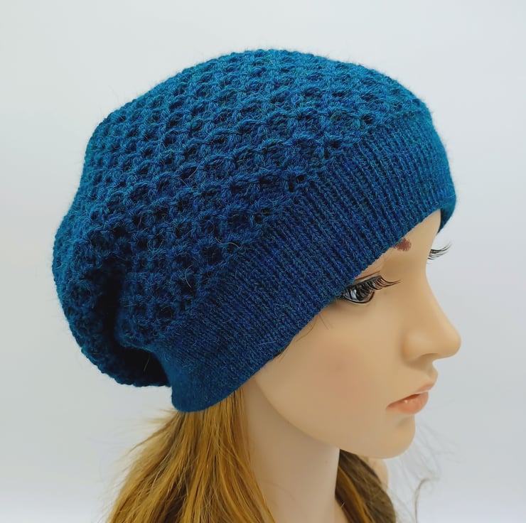 Handmade women's beret, knitted alpaca blend baggy beanie hat.