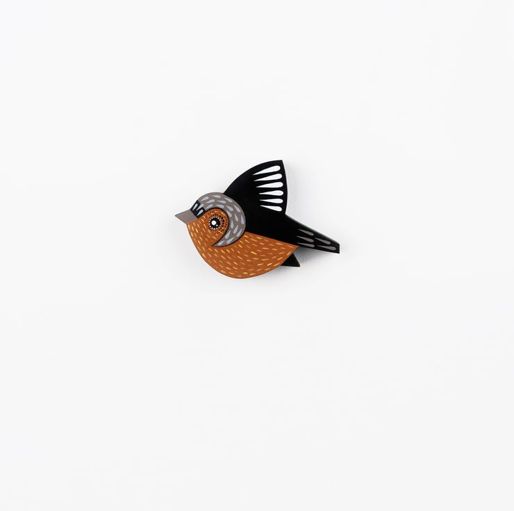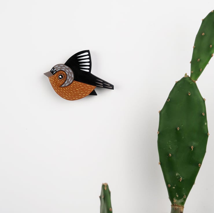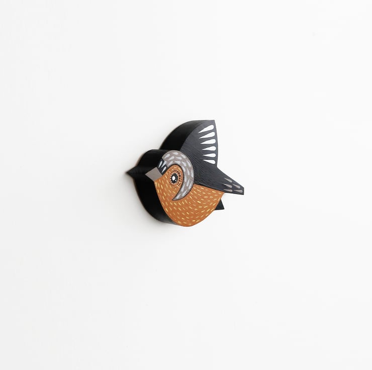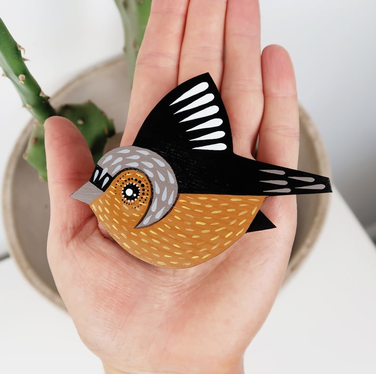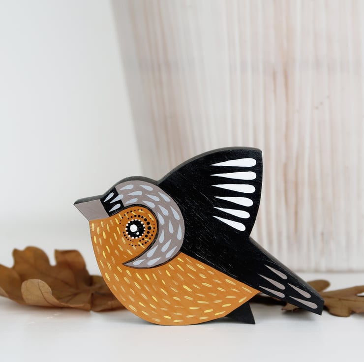 This miniature bird art is fully made by hands with love and huge attention to details. Made of pine wood & hand painted with acrylic paints. Varnished - semi gloss finish. Back is clear wood.