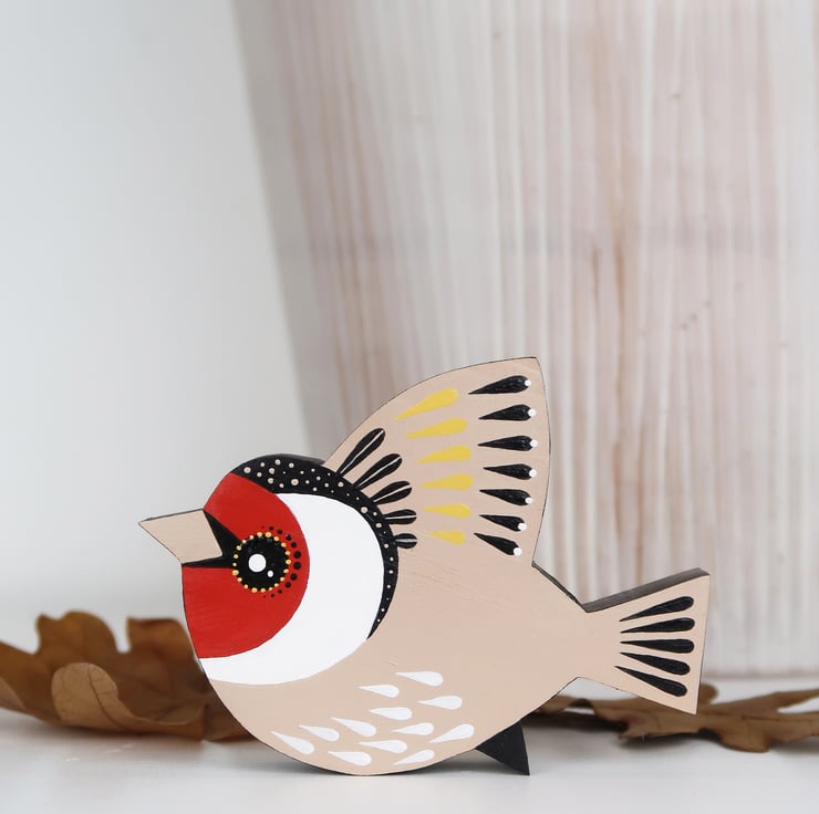 This miniature bird art is fully made by hands with love and huge attention to details. Made of pine wood & hand painted with acrylic paints. Varnished - semi gloss finish. Back is clear wood.