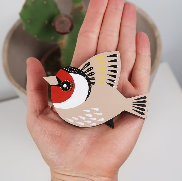 This miniature bird art is fully made by hands with love and huge attention to details. Made of pine wood & hand painted with acrylic paints. Varnished - semi gloss finish. Back is clear wood.