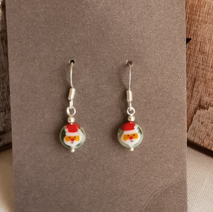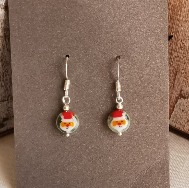 6mm glass bead Santa earrings on silver plated Ear wires.