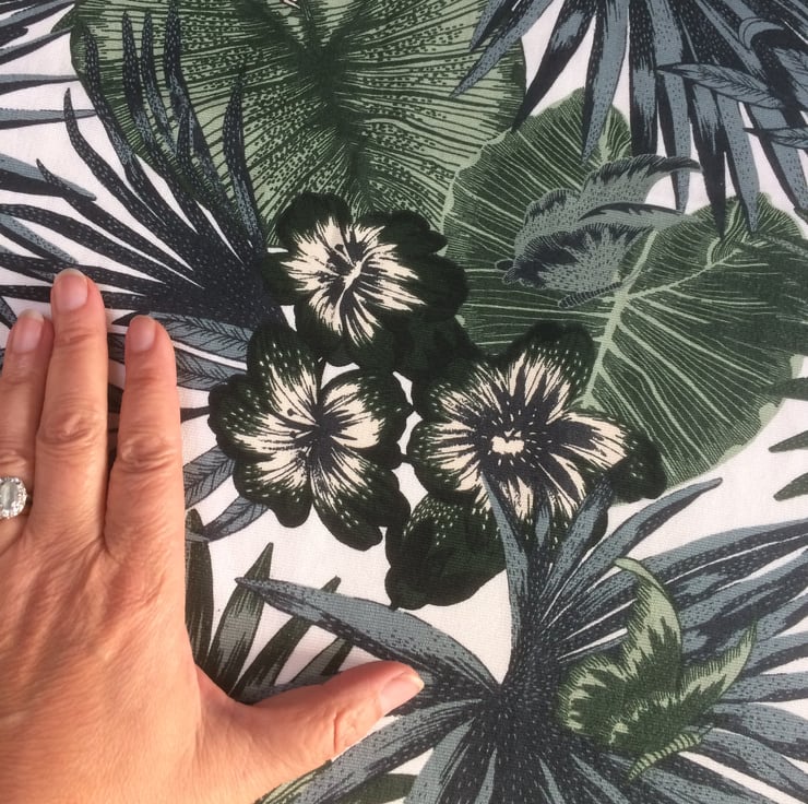 Bold Tropical Jungle Leaf Botanical Dramatic Fabric for a Larger Lampshade. Modern fabric is in great ‘off the roll’ condition.