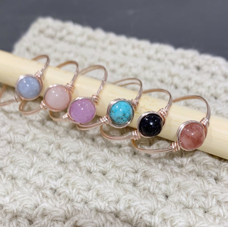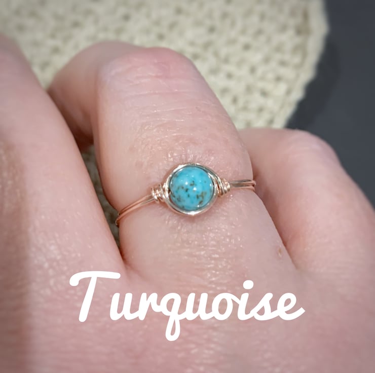A beautiful and dainty turquoise gemstone ring in a lovely rose gold coloured wire.