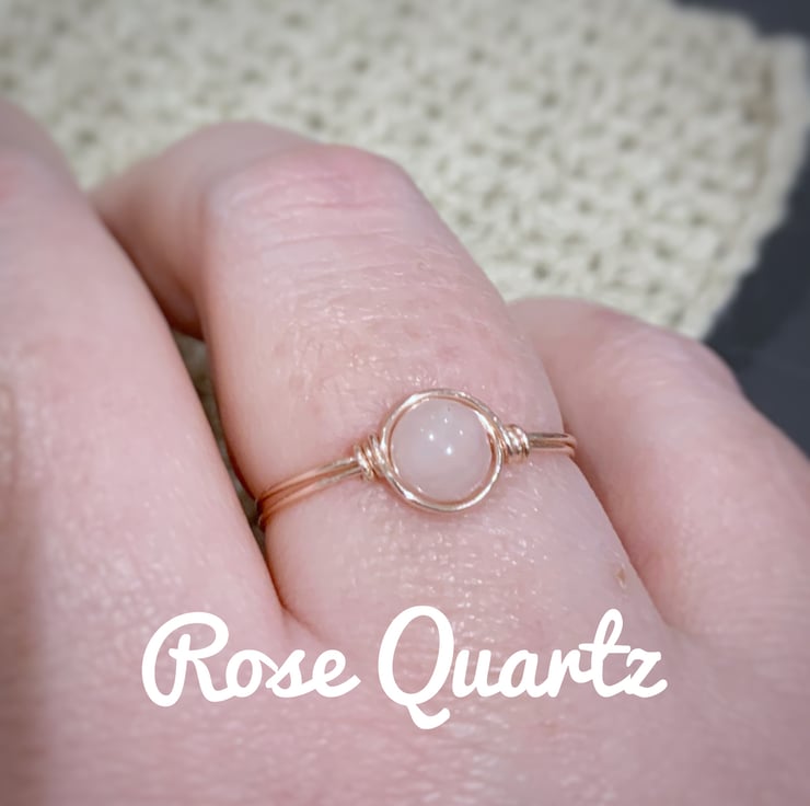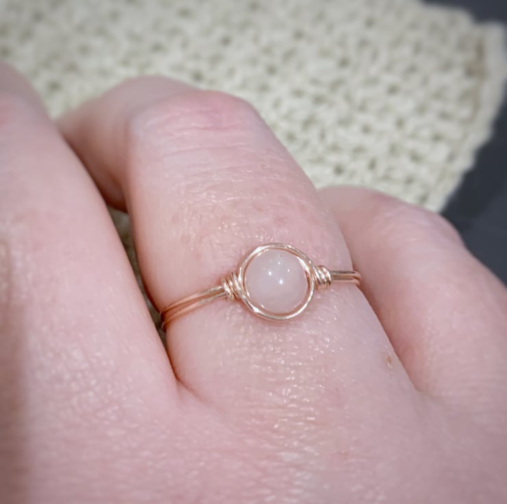 A beautiful and dainty Rose quartz gemstone ring in a lovely rose gold coloured wire.