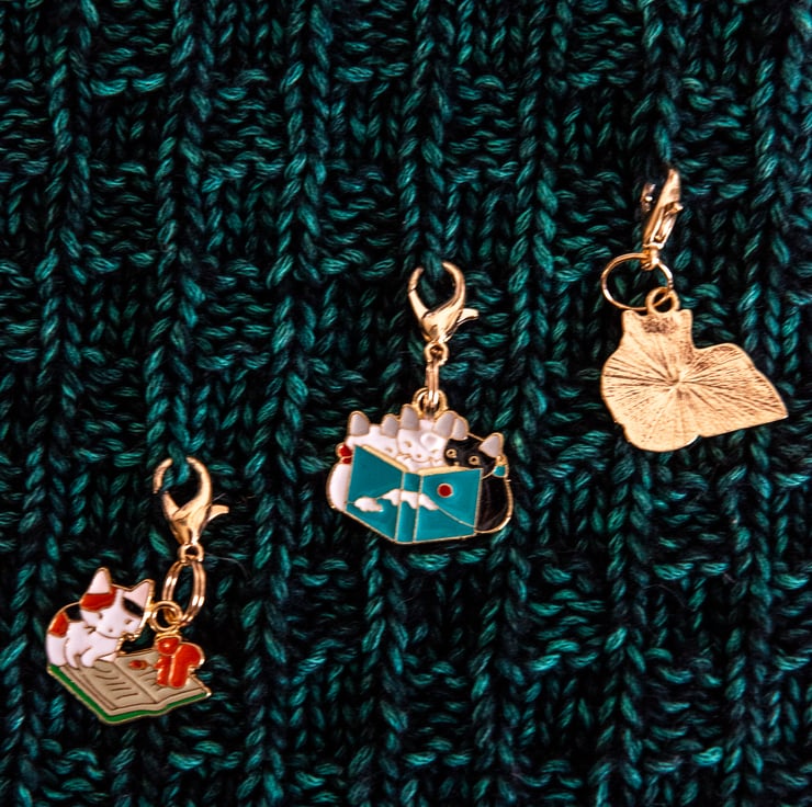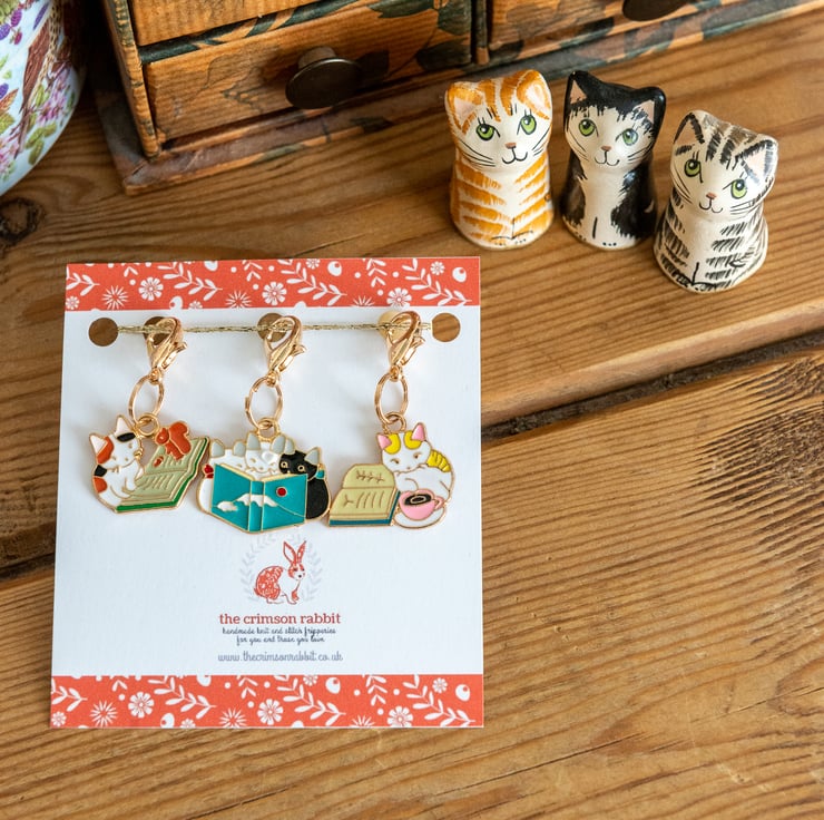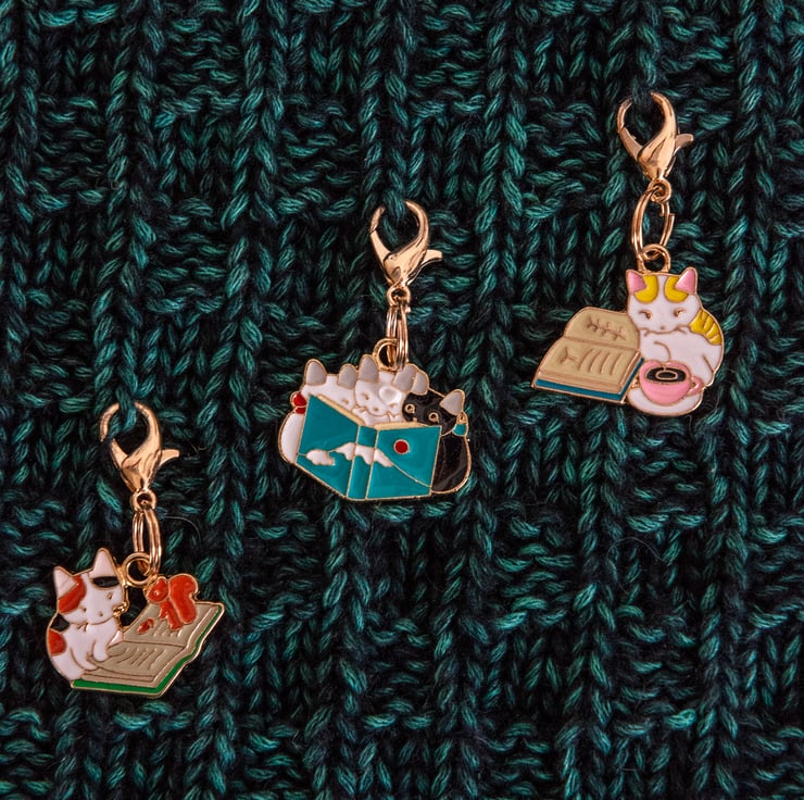 You can never have too many stitch markers / progress keepers to choose from and what's better than kitties reading books?! See, that's how cats get so smart - they read books - that's a fact.