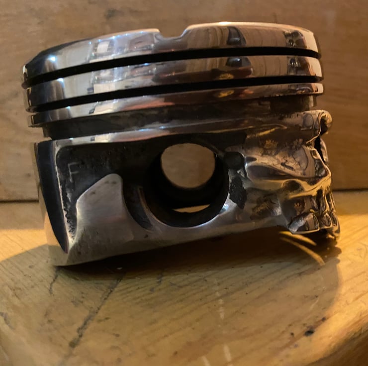 All my pistons are recycled and used from original engines and then hand carved and polished in my garage/shed so no two are ever the same, I also sign and number pistons