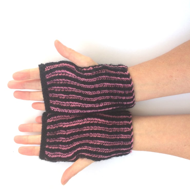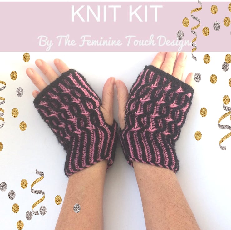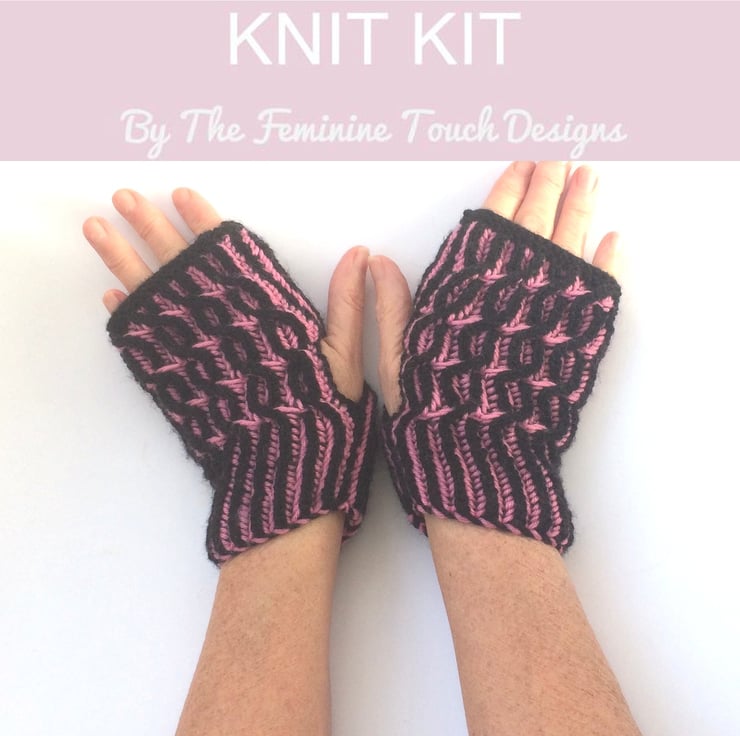 Knitting kit for the Swivel fingerless gloves. These are simple Brioche gloves knitted flat in Falkland wool. The swivel is the introduction of moving brioche cables on the back of the hand. So no complicated brioche increases or decreases to perfect, the pattern is all in the cables.