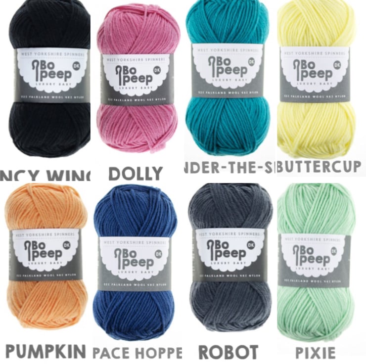 Yarn : 2 x 50 grams of West Yorkshire Spinners Bo Peep. 52% Falkland Wool, 48% Nylon DK