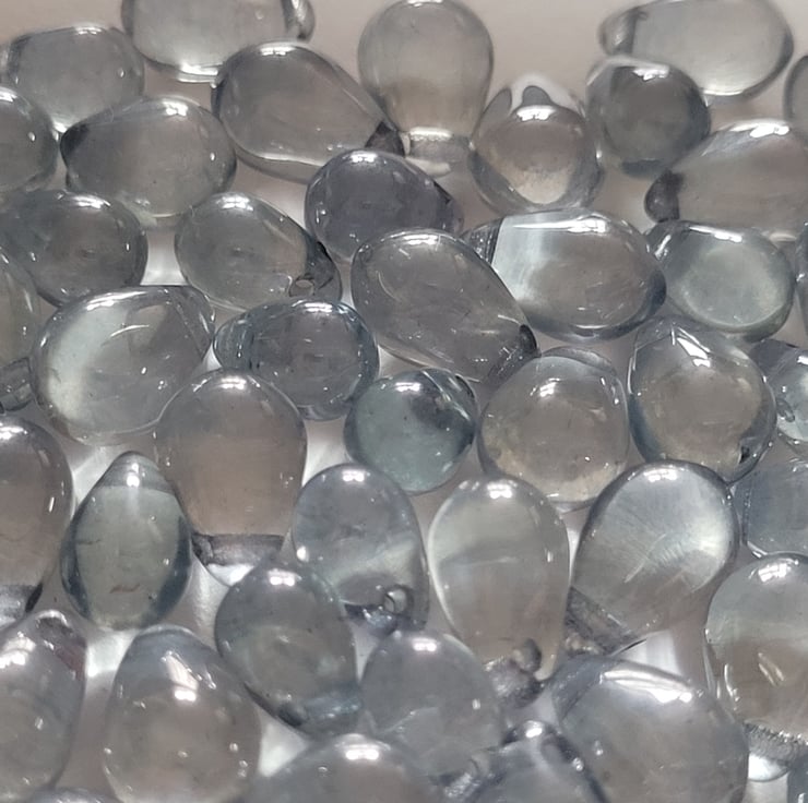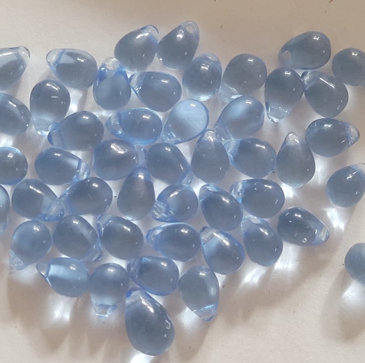 55 Mixed Size Denim Blue Transparent Czech Drop Beads 7mm and 9mm Mix