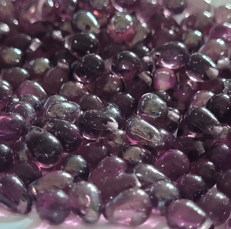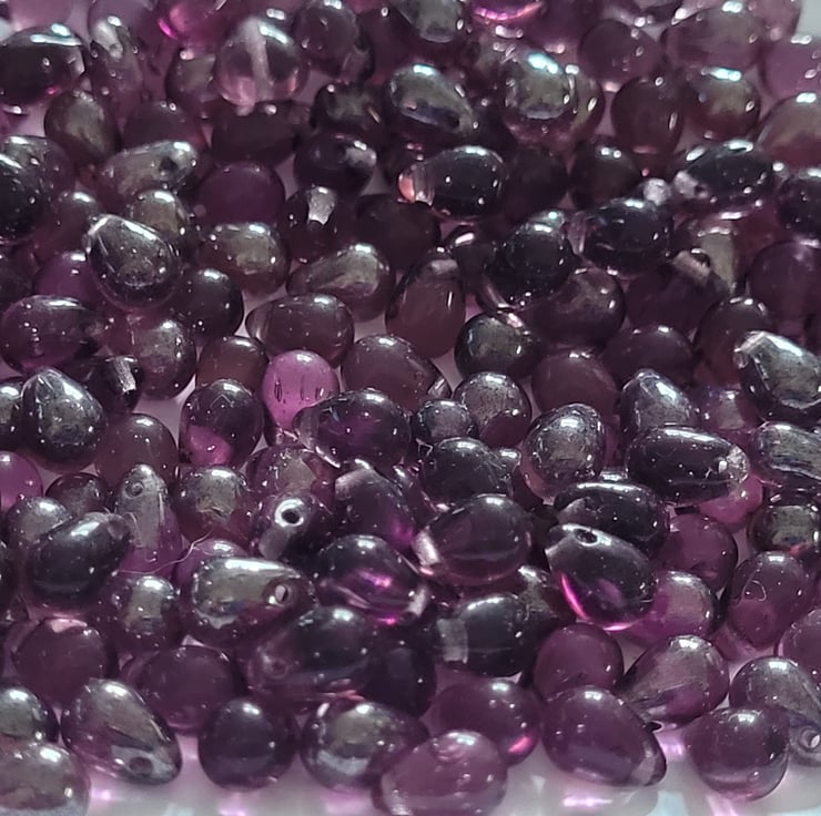 55g Small Purple Czech Glass Drops 9mm Luster and Plain mix