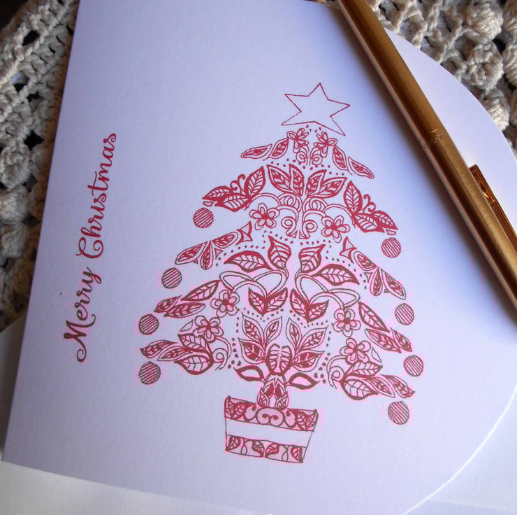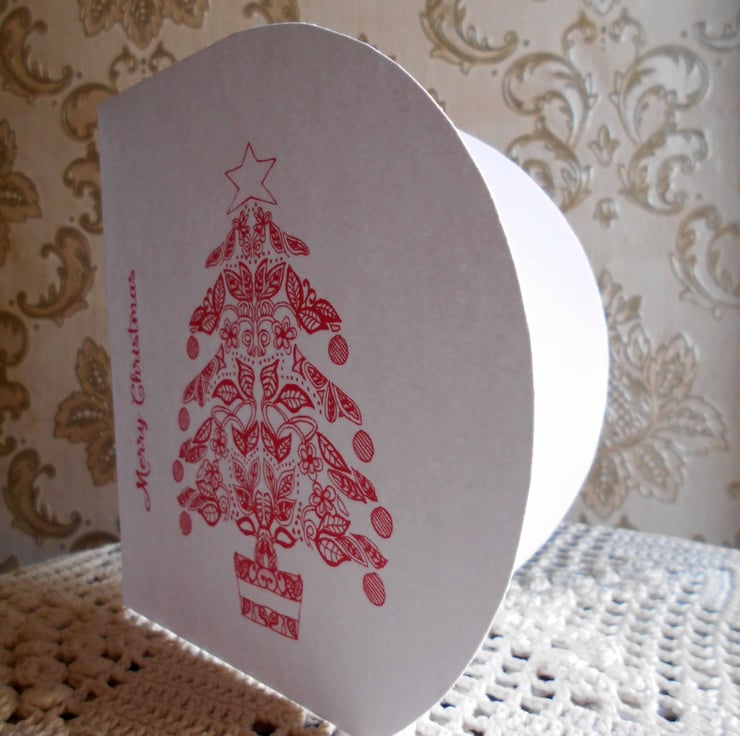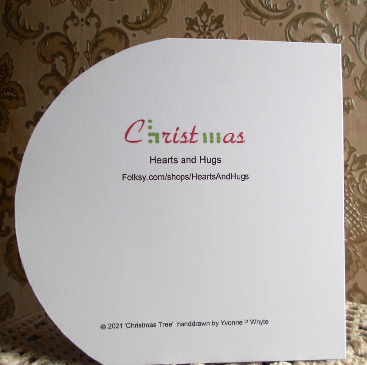 Unique asymmetric greeting card, with intricately handdrawn Christmas Tree design.