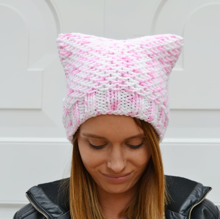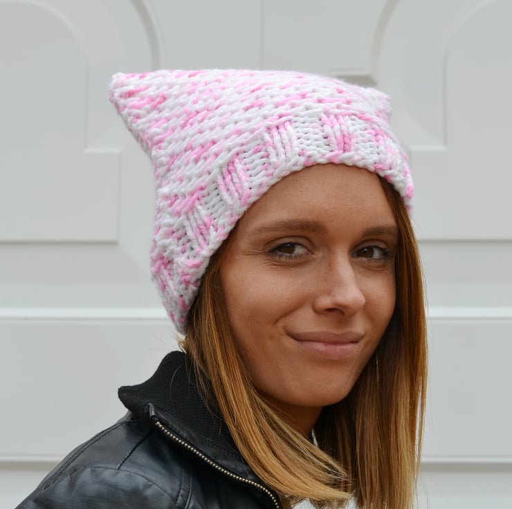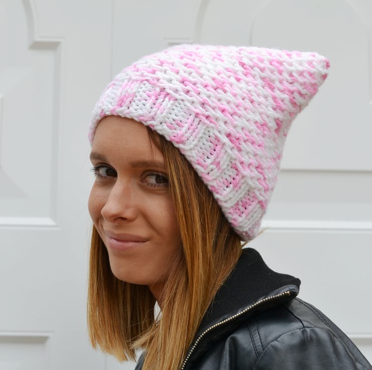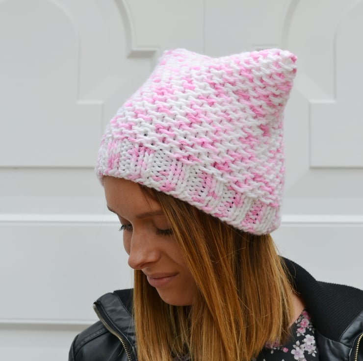 Made in 100% acrylic chunky in a lovely random yarn in white, blush pink and pink - reminds me of marshmallows