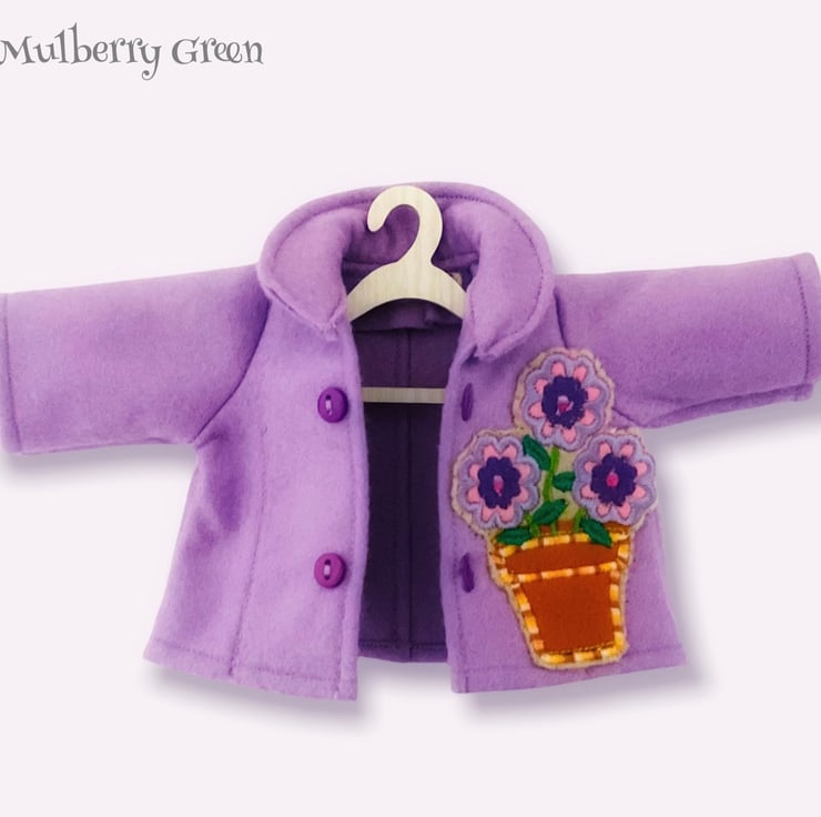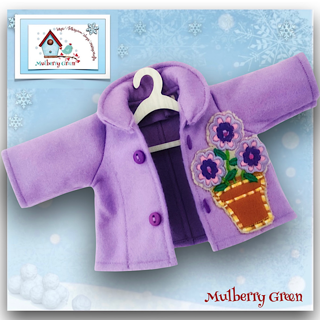 A beautiful little tailored jacket embroidered with a pit of flowers, made especially to fit the Mulberry Green dolls.
