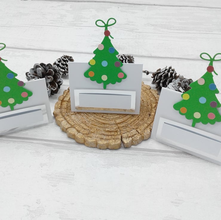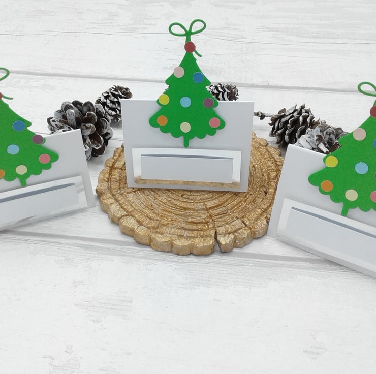 Add a special touch to your Christmas table with this set of 10 Christmas tree place cards. Made from quality cardstock. This rt would also be perfect for winter wedding place settings.