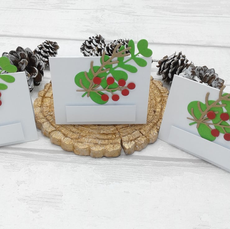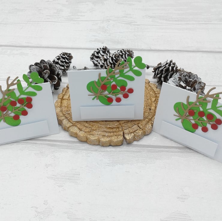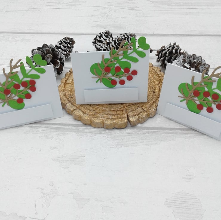 This set of 10 winter foliage place cards/place settings is a perfect finishing touch to any Cristmas dining table and would also be ideal for winter weddings, rustic weddings and hogmonay celebrations.