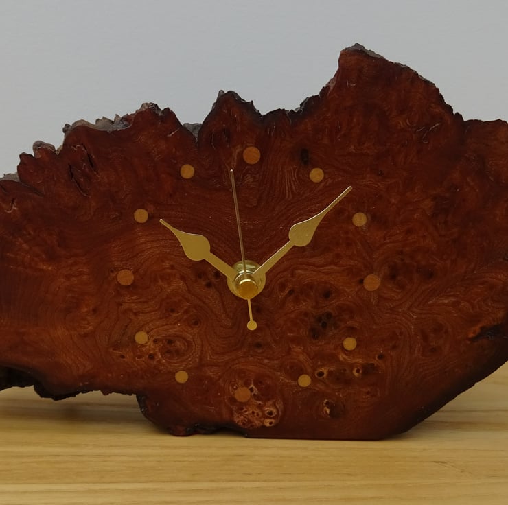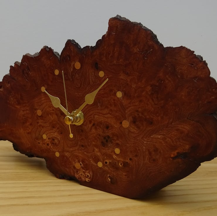Having previously made a wall clock for my house from a similar burr, I knew that the wood has a fantastic grain pattern, and the piece has a gnarly shape which lends itself to a clock.