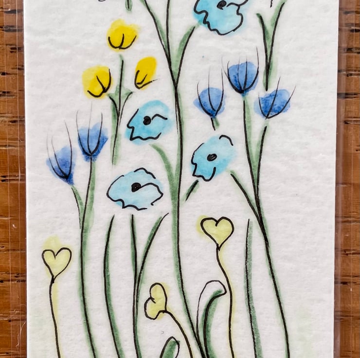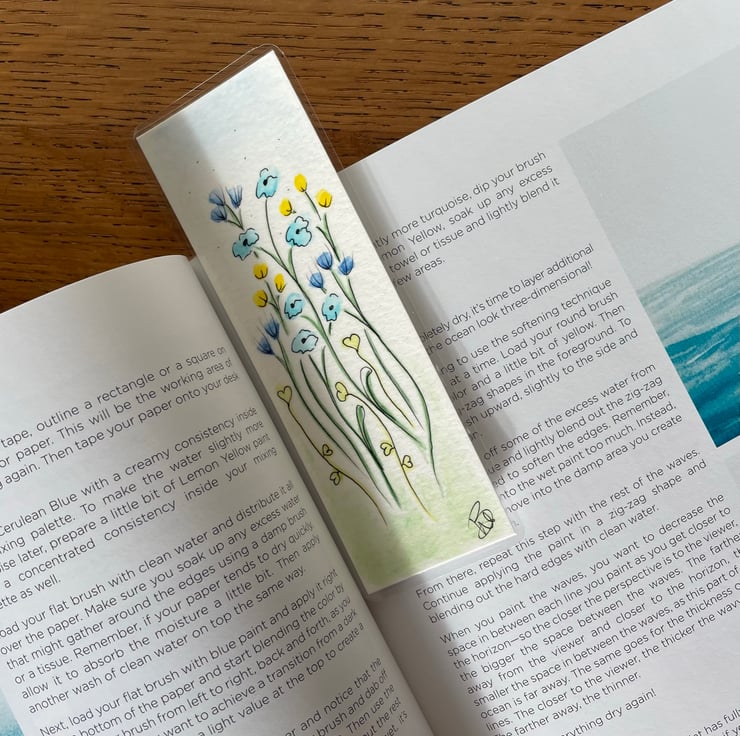 Little flowery bookmark, hand painted with watercolour and ink onto 300gsm watercolour paper signed by myself the artist, before being laminated for protection.