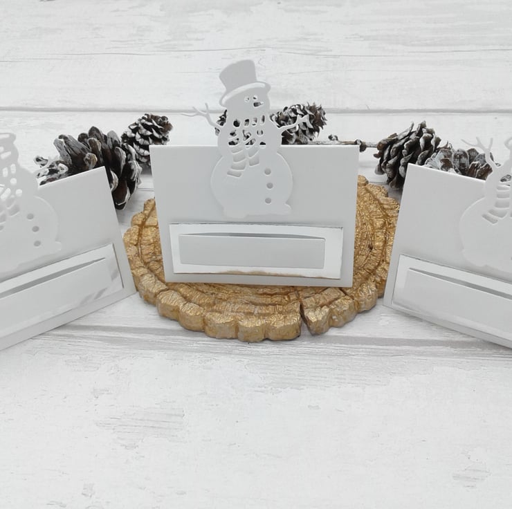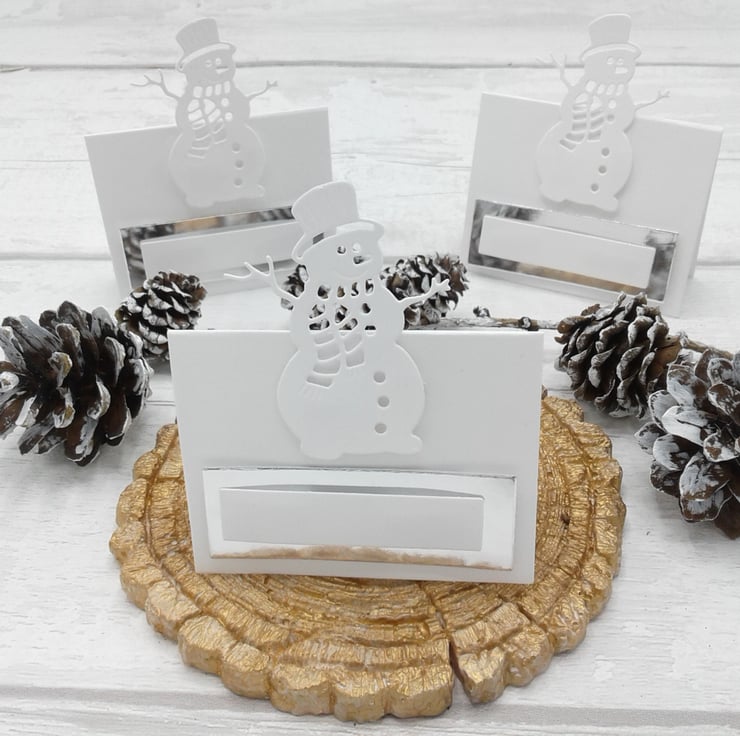 This is a set of 10 snowman place cards/place settings.