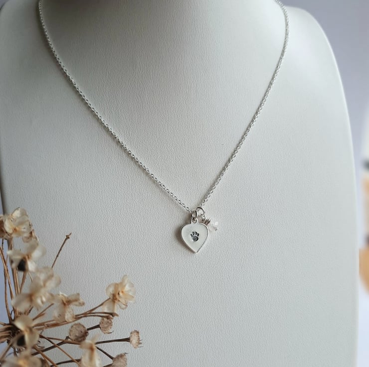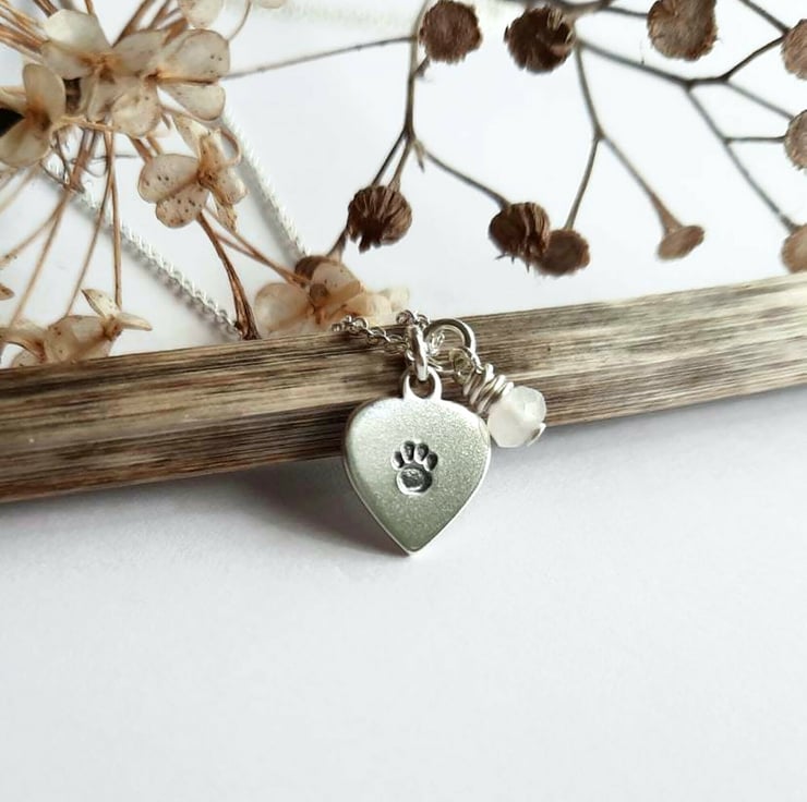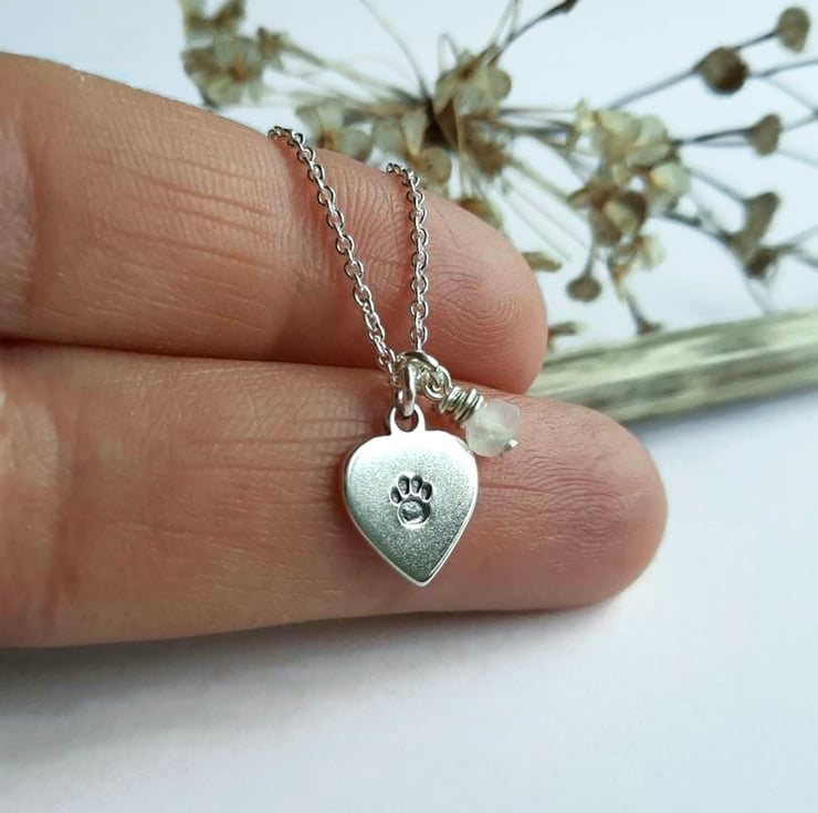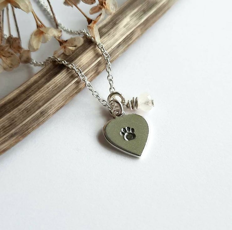 A sweet little 925 sterling silver heart pendant, hand stamped with a tiny paw print - perfect for any dog or cat lover.