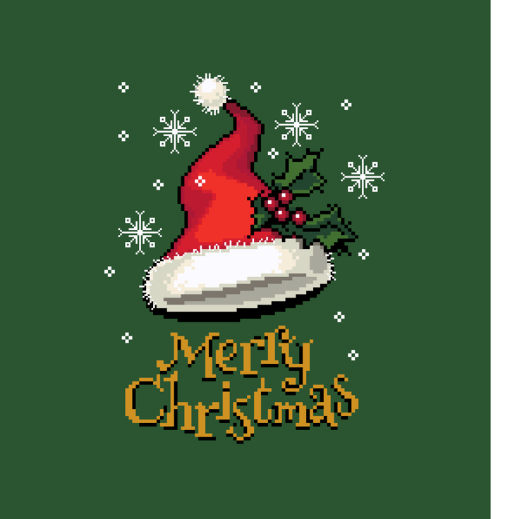 Cross Stitch Christmas Santa Claus hat with snowflakes and holly - Winter holidays - Greetings card idea by Vivsters - PDF counted chart 210. Just 14 colours.