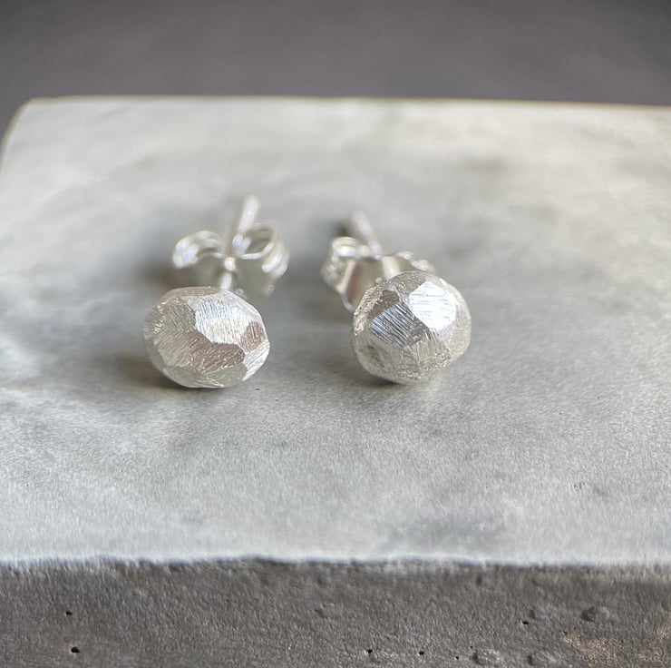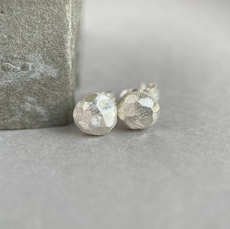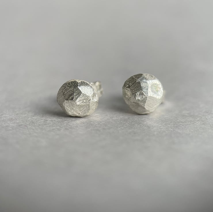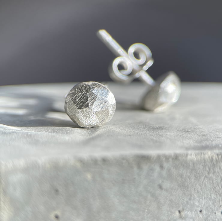 Small and easy to wear. The surface of the silver is lightly textured so they catch the light.